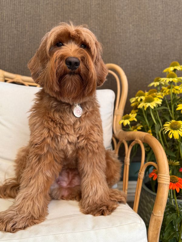 We are very excited to introduce our very first stud. This boy took quite a journey to get to us, riding shotgun all the way from Ontario, Canada. Eli is the sweetest boy. He loves to give hugs and cuddle. He also has a very goofy side to him, always making us laugh. His wavy coat is so beautiful and soft. He is altogether a wonderful boy. We cannot wait to see his puppies.